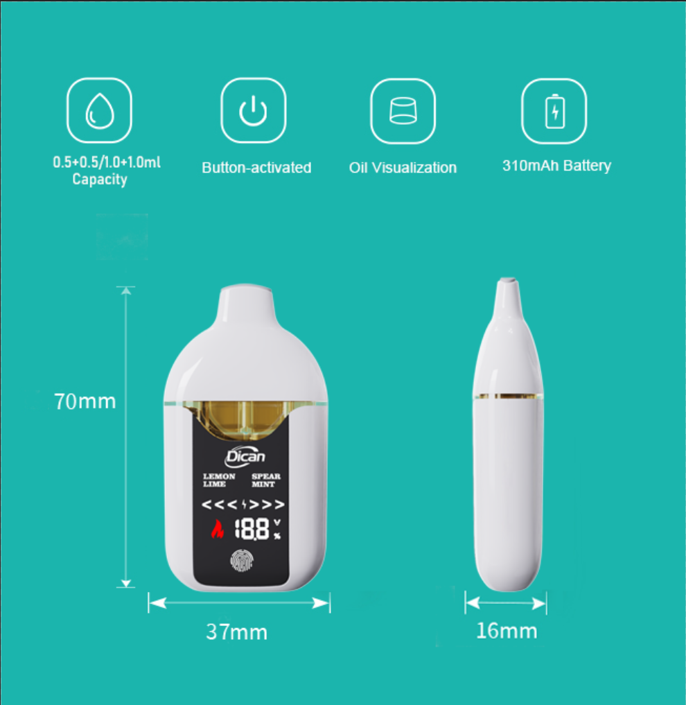 Dican Vape è orgoglioso di presentare la nostra ultima svolta: il doppio dispositivo di vaporizzazione dell'olio di cannabis post senza sapore, progettato per gli appassionati di olio di cannabis che apprezzano la flessibilità, la purezza e lo stile.